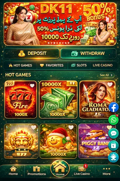 DK11 GAme is a modern Pakistani casino app made for people who enjoy mobile gaming and online earning at the same time. It brings different types of games into one app, so players do not need to install many apps. Instead, they can play slots, card games, and other casino-style games in one place.